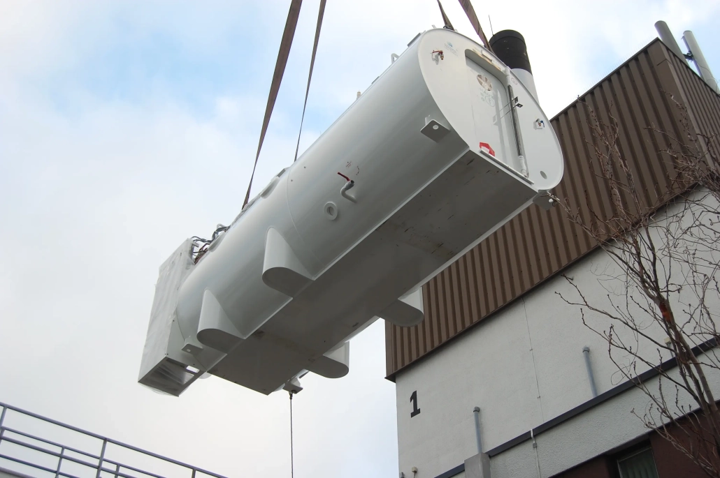 The removal of our old chamber and the installation of our new Haux Starmed 2000 recompression chamber took place on 18th January 2008.